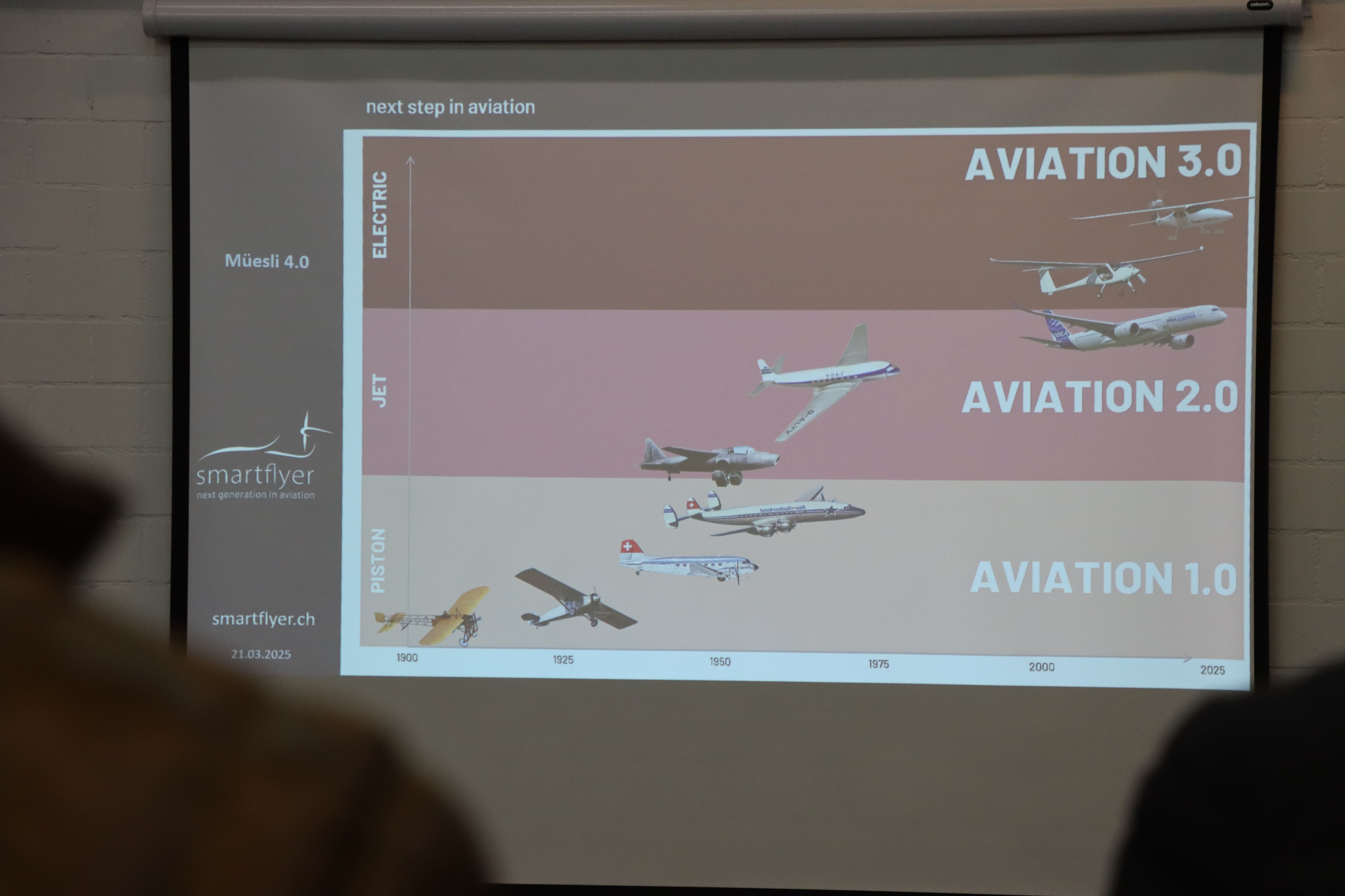 Das Unternehmen setzt mit dem elektrisch betriebenen SF1 – einem Pionierflugzeug, das Schweizer Präzision mit bahnbrechender Energieeffizienz vereint – neue Massstäbe in der Luftfahrtbranche. Mit sichtbarer Leidenschaft gewährte Rolf Stuber den Gästen spannende Einblicke in die Welt von smartflyer. Er sprach über Fortschritte, aber auch über Herausforderungen, die ein so ambitioniertes Projekt mit sich bringt. Die Anwesenden erhielten einen Eindruck davon, was es bedeutet, an der Zukunft der Luftfahrt zu arbeiten – Schritt für Schritt, mit Leidenschaft und Ausdauer.